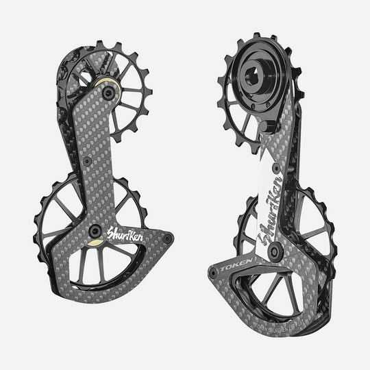 No reviewsLa TOKEN Shuriken TK1759XS ZENITH est une chape de dérailleur surdimensionnée conçue pour les transmissions SRAM eTap AXS route 12 vitesses, hors versions XPLR. Équipée de galets oversize 15T / 19T, de roulements céramique TOKEN TBT et du profil de dents Conti-Wave, cette chape...Prix normal €307,95Prix normal €307,95 -